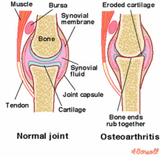 OA is known as the ‘wear and tear’ condition and is generally associated with ageing. Osteoarthritis can degrade cartilage, change bone shape, cause remodelling of the underlying bone and inflammation, resulting in pain, stiffness and loss of mobility.