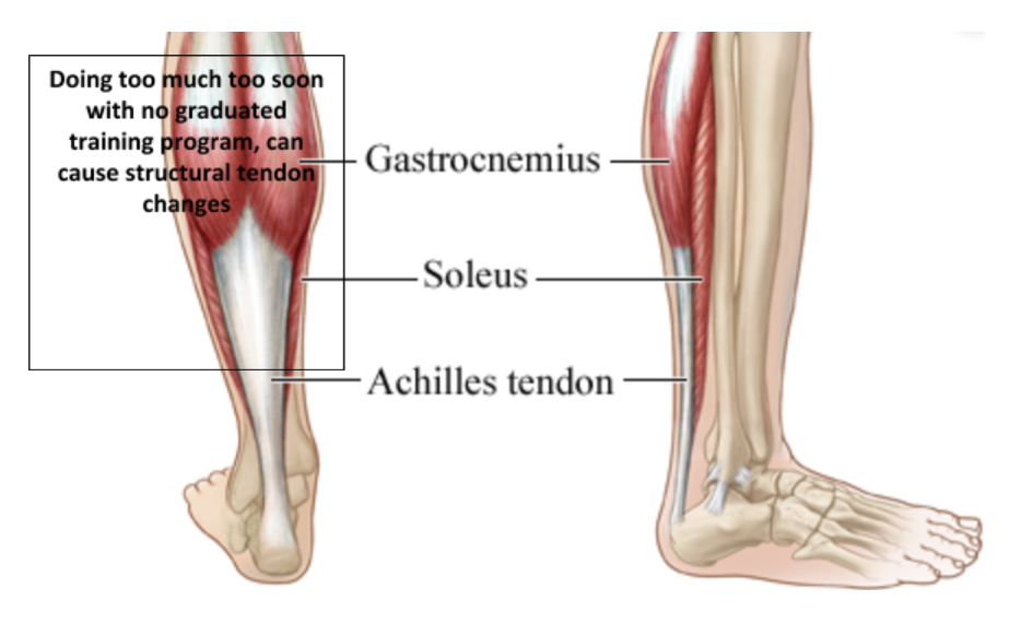 Inadequate rest periods and poor sleep patterns also reduce the tendon’s ability to remodel and adapt to the training stimulus. Did you know that the achilles tendon is the largest tendon in the body and the soleus takes 6-8x your body weight per step when you run! That means your soleus must be pretty strong to withstand those loads!